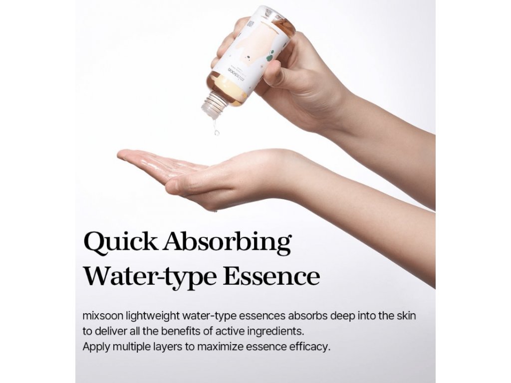 Citlivá pleť má svá specifika a jedním z nich je sklon k velmi snadnému podráždění. S tím pomůže bojovat zklidňující esence od mixsoon, která díky obsahu centelly (pupečníku asijského) umí zklidnit podráždění pleti, zároveň pleť vyživit a hydratovat. Esence pomáhá stimulovat kolagen a tím zabraňuje předčasnému stárnutí pleti.